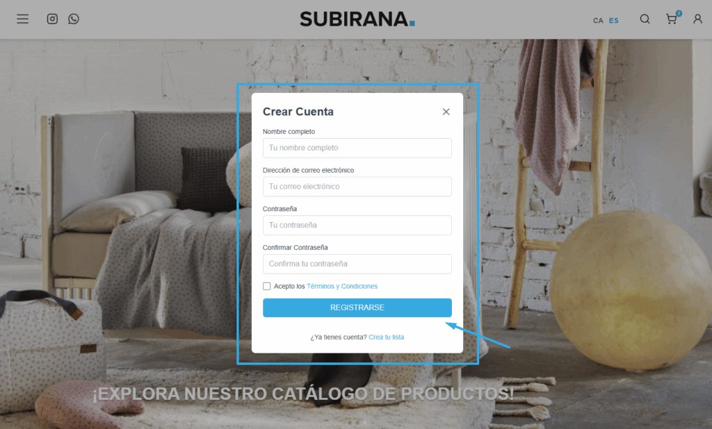 - Rellena el formulario con tus datos y clica en el botón REGISTRARSE. Automáticamente iniciarás sesión en tu perfil.