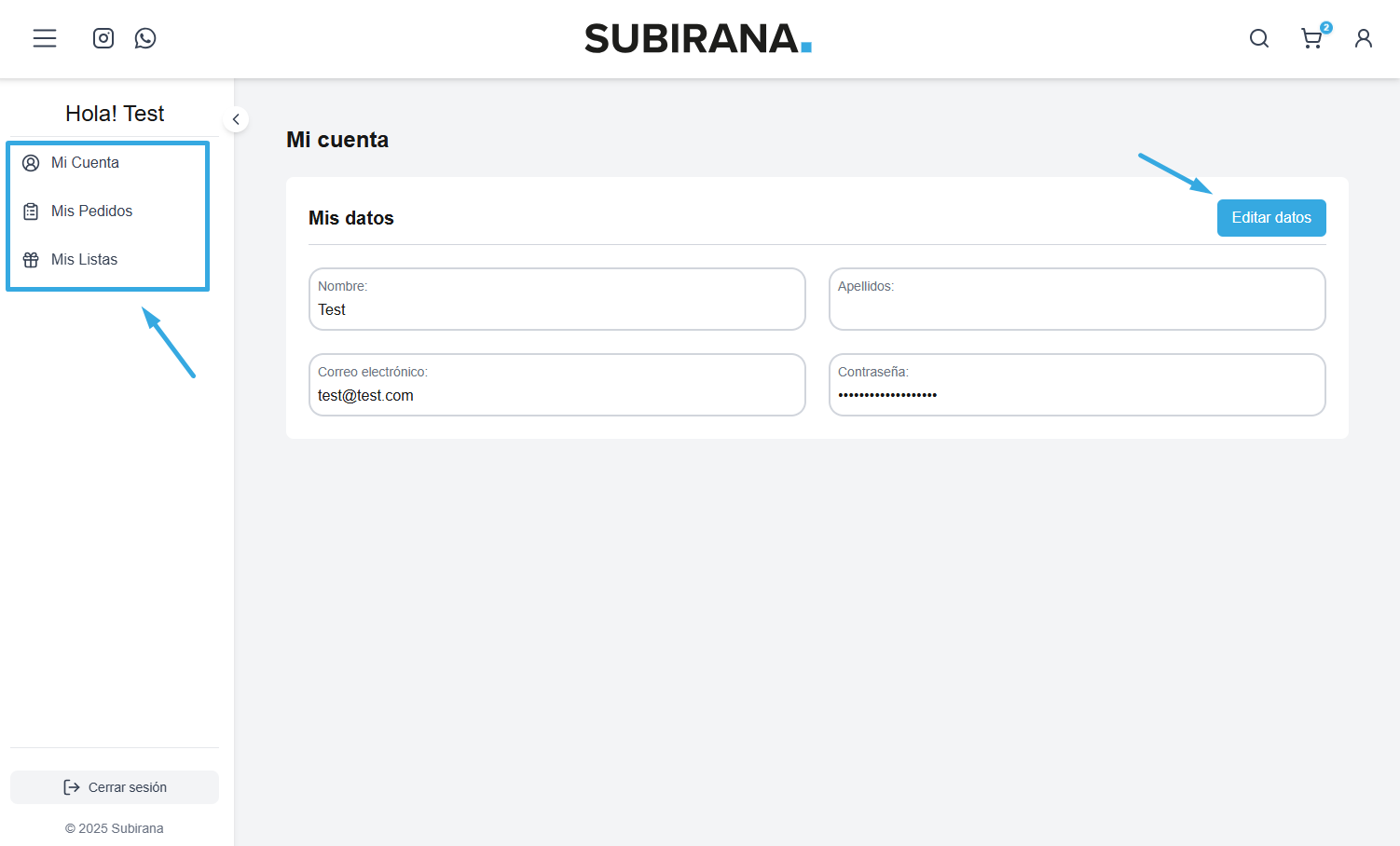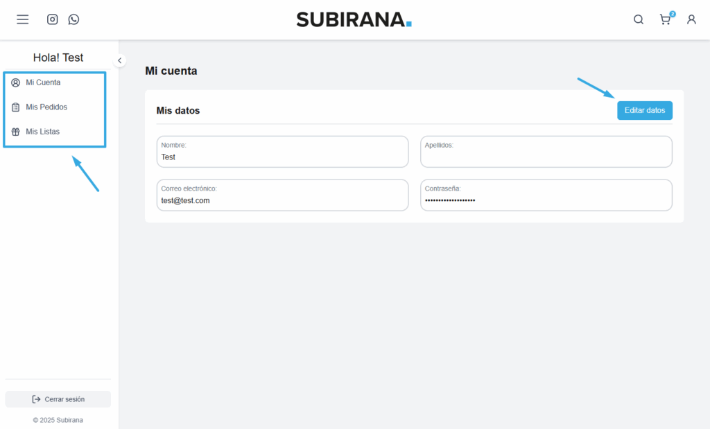 - En tu perfil podrás editar tu información, gestionar los pedidos realizados y Crear Listas de Regalos.